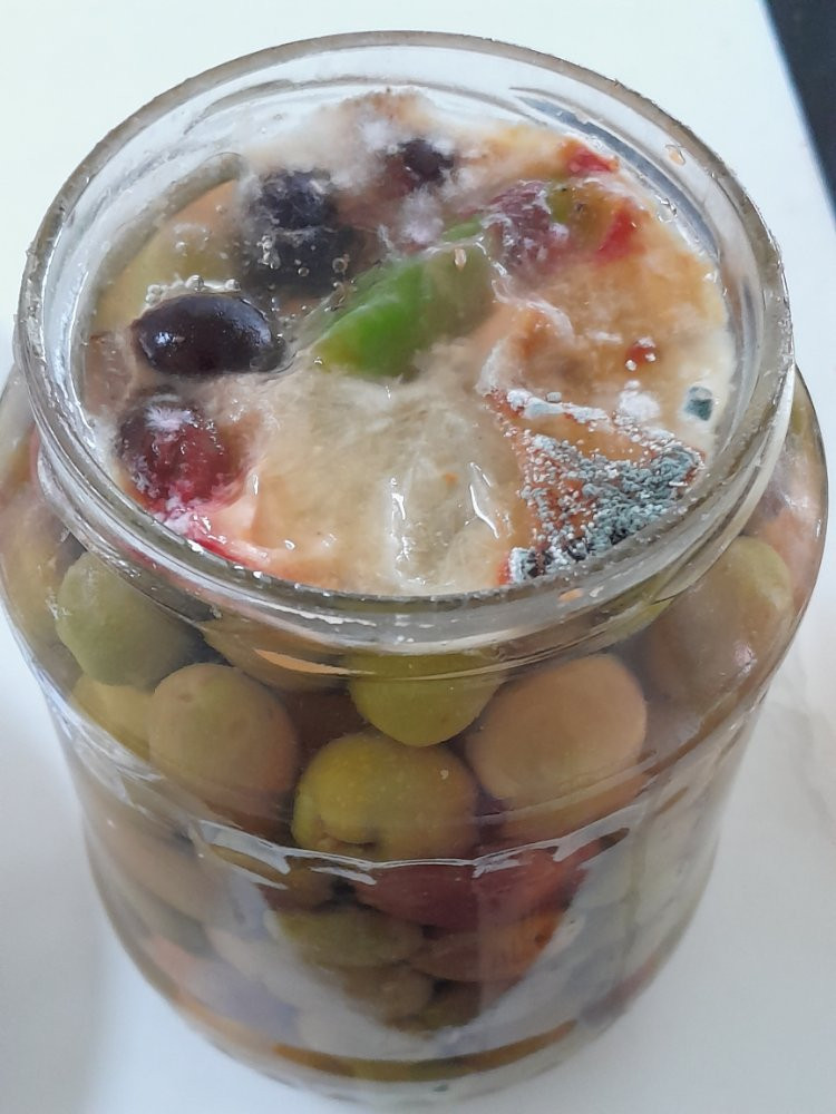 Das mit untergetaucht halten schaffe ich nicht. Selbst wenn ich bis oben anfülle und das Glas zuschraube verdampft ja doch ein Teil und es ist oben Luft. Es schimmeln ja auch nicht die Oliven sondern die Ölschicht an der Oberfläche, so mein Eindruck.
