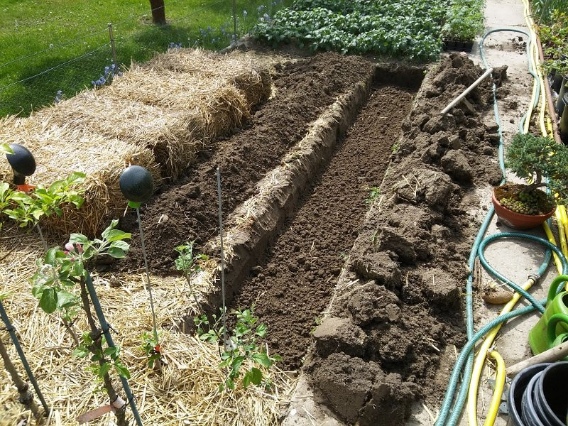 Man zeigte dort, wie eine Lage Stroh in ein Beet eingegraben wurde. Dann kam Erde drüber.