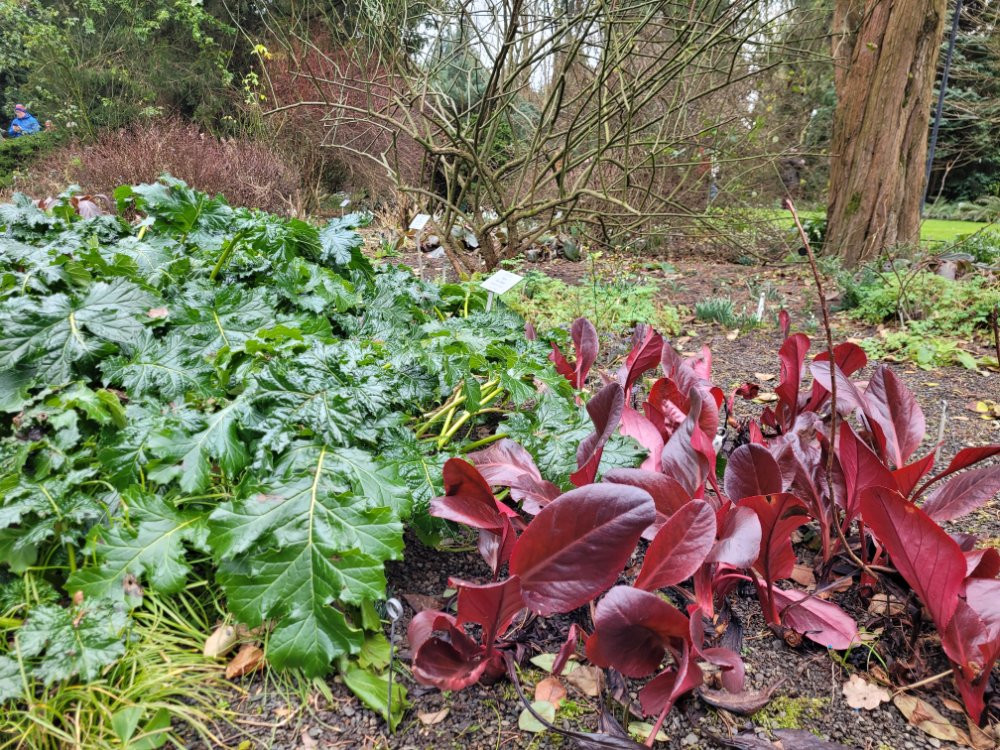 Bemerkenswert sind aber neben altehrwürdigen Baumriesen auch zahlreiche Winterblüher wie Seidelbast oder Winterblüte, die den Gartenraum schon mit ihrem Duft erfüllten. Mir ist erst später aufgefallen, daß ich nirgends im Park auf Zaubernüsse gestoßen bin. Vielleicht habe ich etwas übersehen