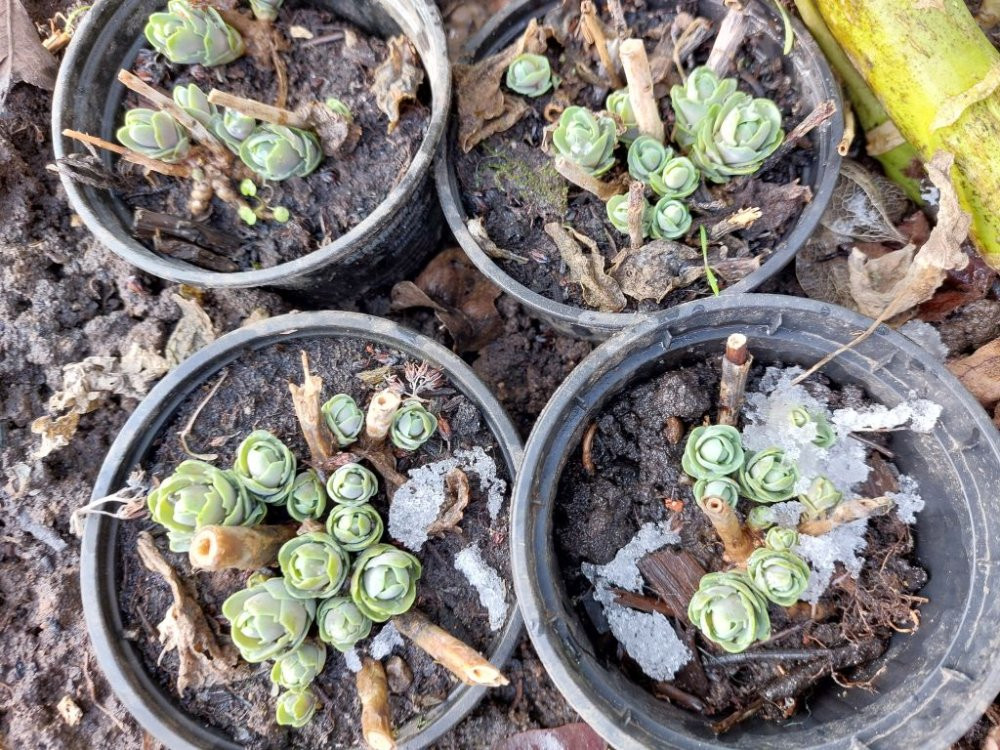 Habe sie 2024 getopft und jetzt wollen sie wieder austreiben. Sorte leider unbekannt. 10 Töpfe mit 9 cm Durchmesser.