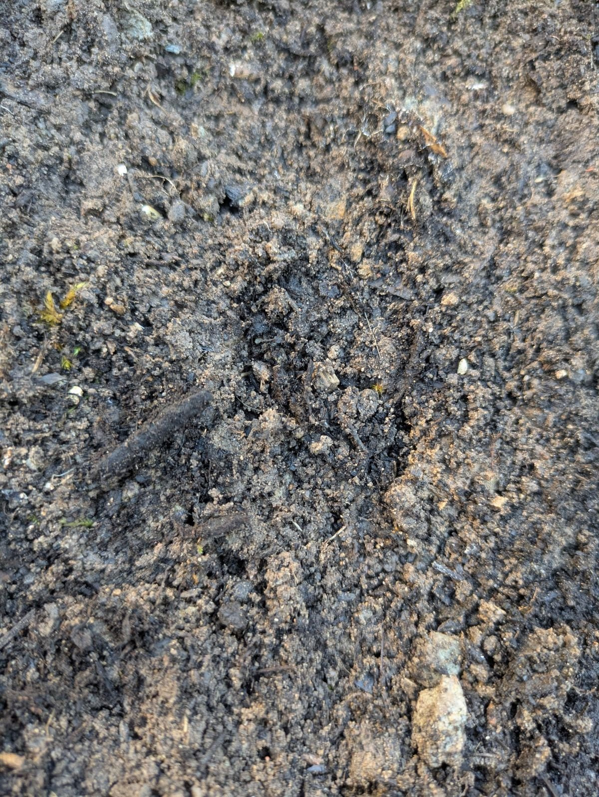 Foto der Oberfläche wird schwierig, weil ich im März (nachdem ich die Bodenprobe abgeschickt habe) eine Ladung Grünschnittkompost von der örtlichen Deponie verteilt habe, jetzt sieht man halt nur den Kompost
