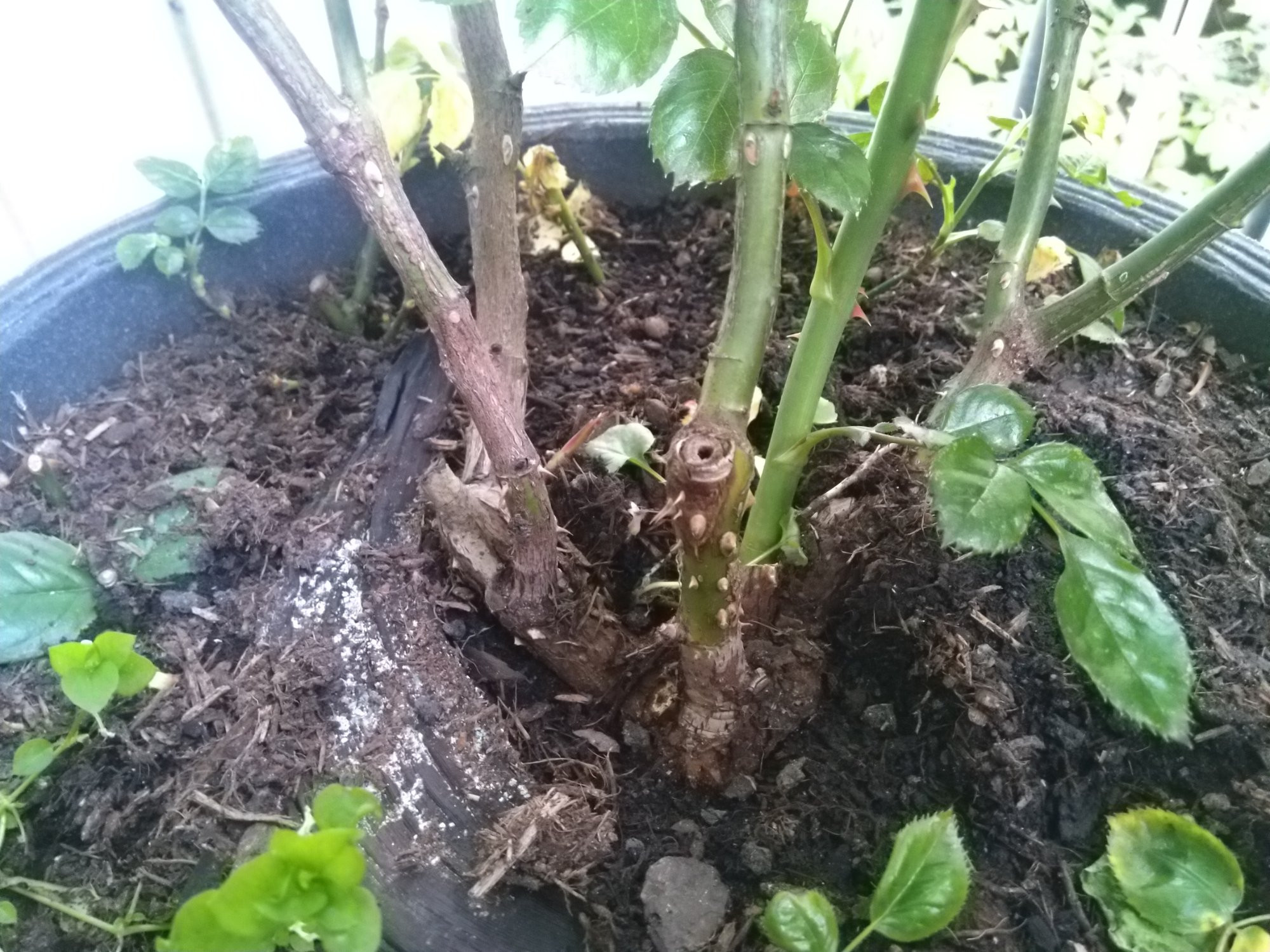 Scented Whisper steht seit fünf Jahren im selben Topf im selben Substrat und wurde genau so geschnitten wie die letzten Jahre auch. Einziger Unterschied ist, dass ich das Schnittgut mit in den Topf gesteckt habe, weil ich keine Lust hätte sie runter auf den Kompost zu bringen. Interessanter Weise sind alle angegangen. Die Edelsorte hat schon seit einigen Jahren eigene Wurzeln gebildet, aber noch nie einen Trieb von unten geschoben. Souvenir du Docteur Jamain letztes Jahr wurzelnackt gepflanzt und nur einen langen Trieb produziert. Keine Schnittmaßnahmen. Dieses Jahr plötzlich mit Trieben und Blüten ohne Ende. Wäre es nur bei SdJ hätte ich das Verhalten darauf geschoben, dass sie jetzt erst richtig eingewurzelt ist. Aber bei der "alten" Scented Whisper überrascht es mich doch. Ich werde das auf jeden Fall noch mit anderen Rosen ausprobieren.