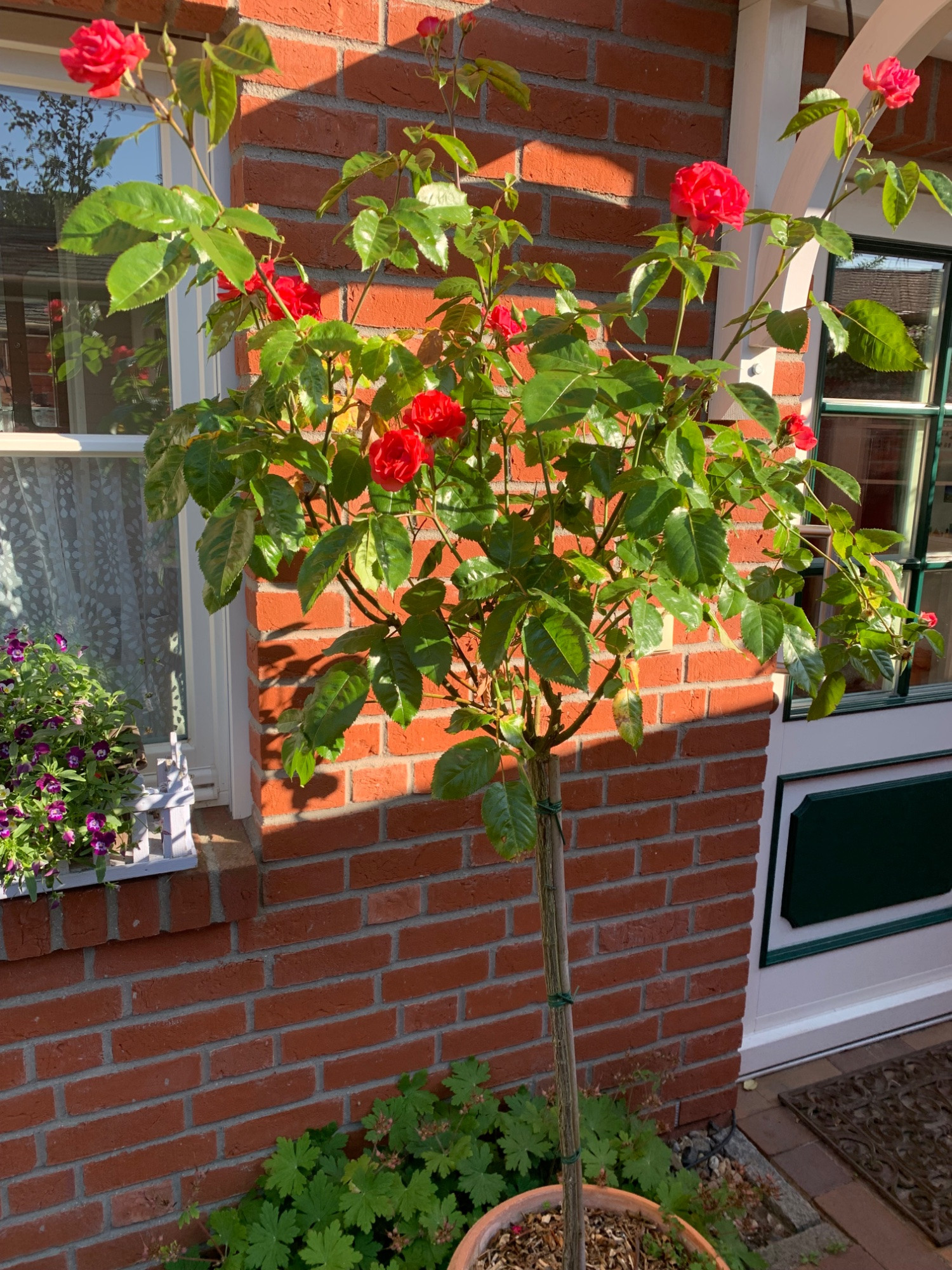 Ohne Frage gedeihen die Rosen im Beet besser. Zumindest wenn sie die Winter überstehen. Ich habe hier viele Stammrosen im ( eher kleinen) Topf, weil sie die Winter wegen der oben liegenden Veredelungsstelle häufig eben nicht unbeschadet überstehen würden.