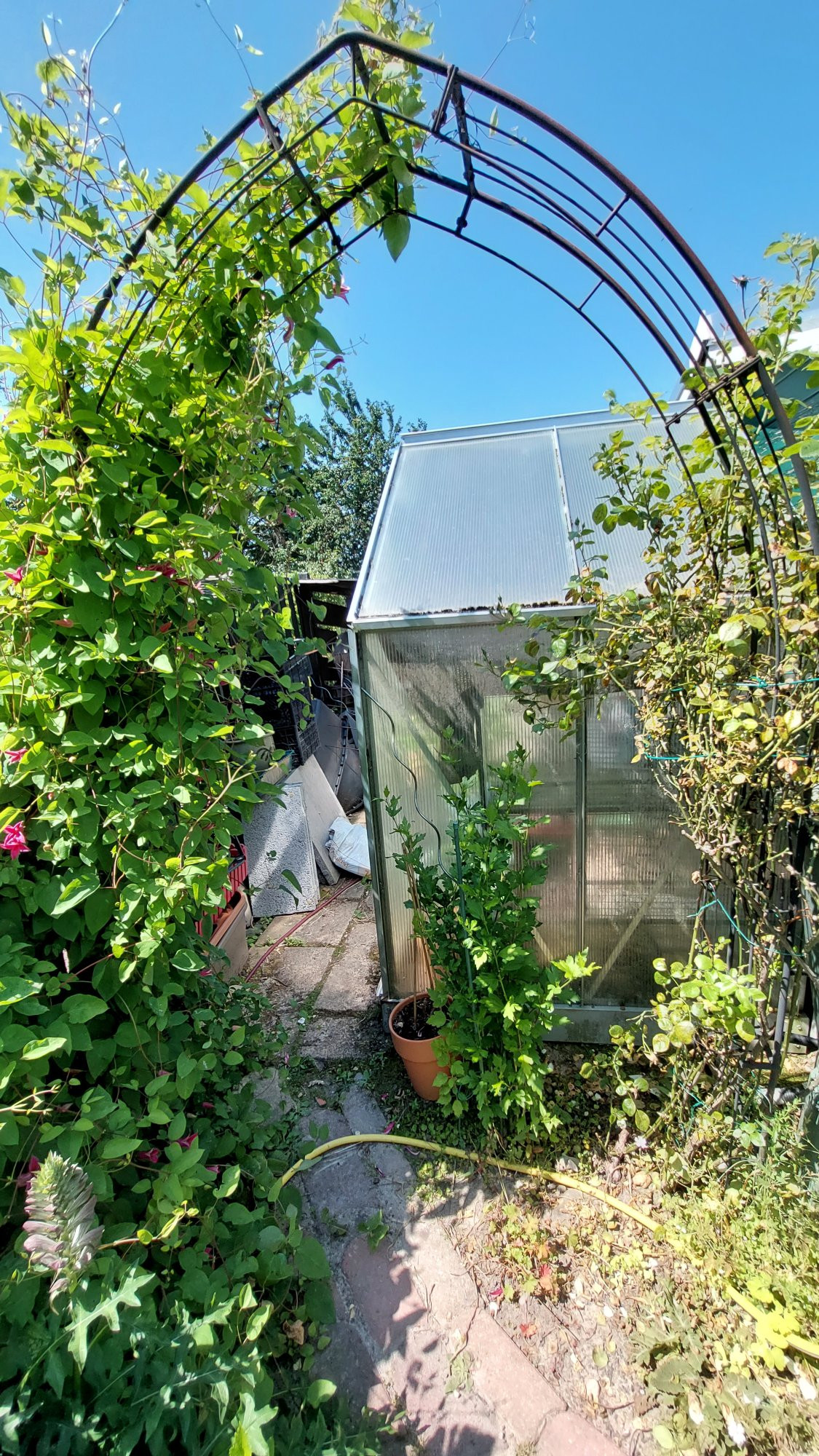 Danke euch! Ja, die Jasmina auf dem Foto gefällt mir!! Boden tauschen dort ist gar nicht so einfach. Betonhard und der Bogen steht im Wege. Der ist ziemlich tief eingesetzt. Rechts neben der Rose, am Gartenhäuschen steht noch ein Clematis texensis im Wege. Aber im Herbst kommt der Gärtner, der hat bessere Geräte.Roeschen1 hat geschrieben: ↑19. Jun 2025, 16:37 Würde dir Jasmina gefallen?