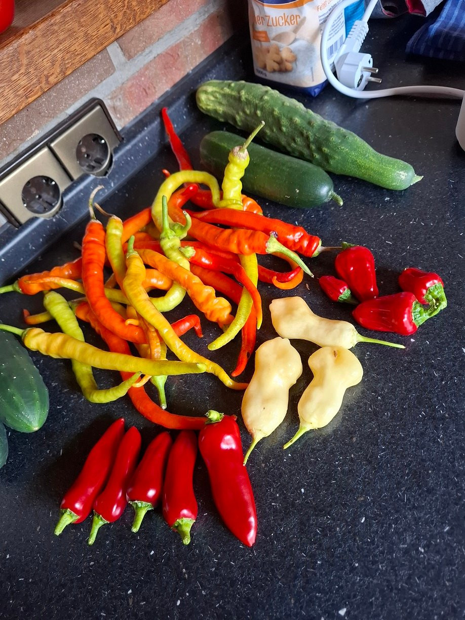Mich erinnern die an "Milder Spiral", man kann Sie grün ernten und einmachen wie Peperoni. Bei denen auf dem Bild war ich zu langsam bzw. hab sie länger ausreifen lassen. P.S.