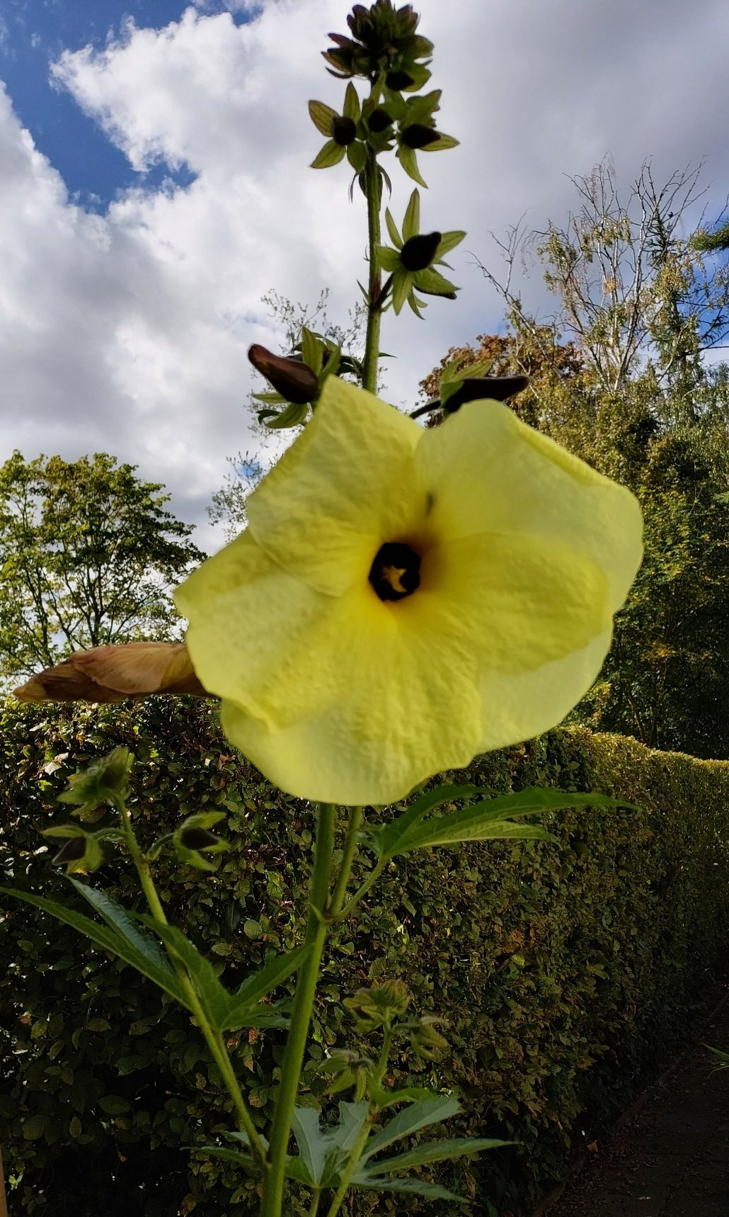 Abelmoschus Manihot. Riesenblüte. Pflanze ist nun über 2 m hoch und voller Knospen. Nochmals dank an den lieben Purler für die Samen.