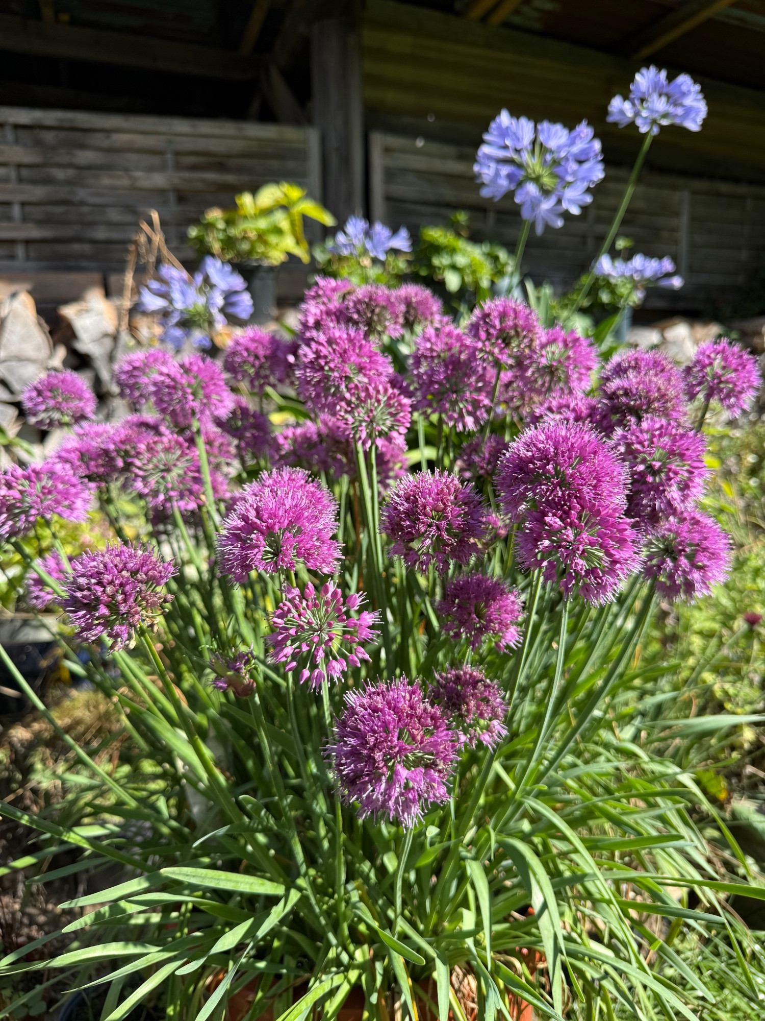 Allium "Lavender Bubbles": Allium senescens Sorte: Katzenminze und Lotus hirsutus: Der Lotus blüht schon lange wenn auch nicht so prachtvoll wie manch andere Art.