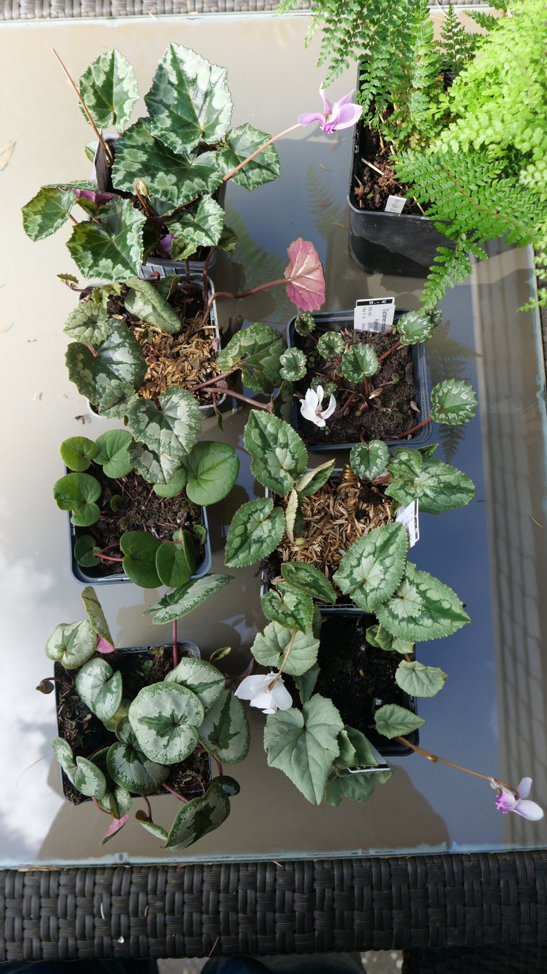 Da ich nicht mehr viel Platz im Garten habe, kam nicht viel mit. Ein paar Cyclamen (Black Sabbath, dunkle Auslese, RB Maggie, Fairy Rings, C. purpurascens) und eine Hosta.