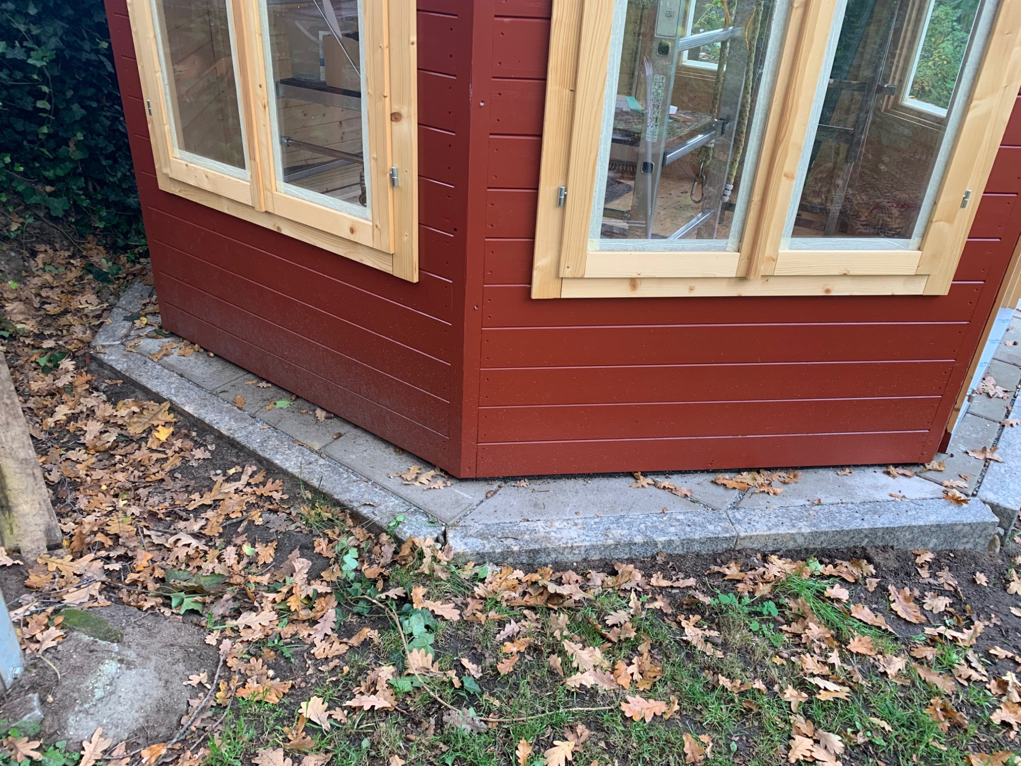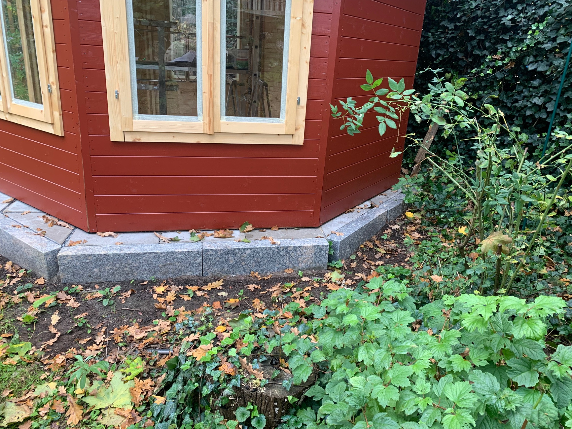 Wir haben in diesem Sommer einen achteckigen Gartenpavillon gebaut. Sie heißt Veronica, ist fast fertig und hat Platz zu ihren Füßen im Halbschatten/Schatten.