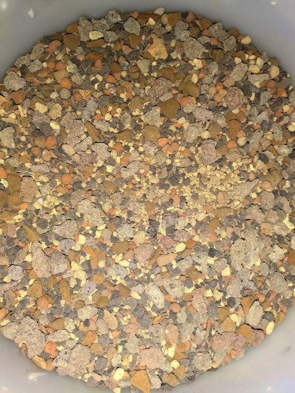 Rechts dieses Streumittel aus Blähton, warum ist der grau? Wusste gar nicht, dass es grauen Blähton gibt.
