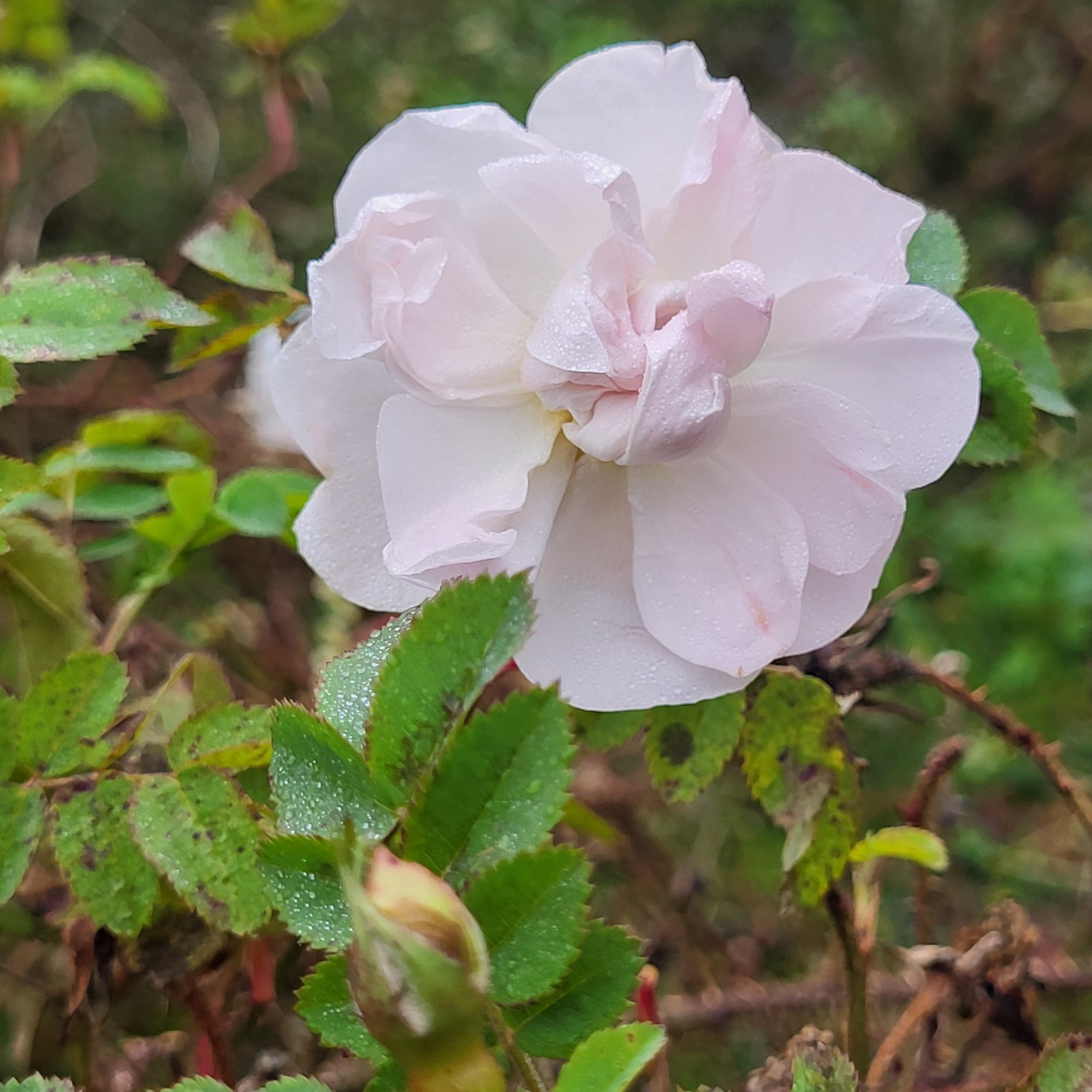 'Stanwell Pepetual,' blüht bereits früh und gehört hier auch zu den letzten Rosen .