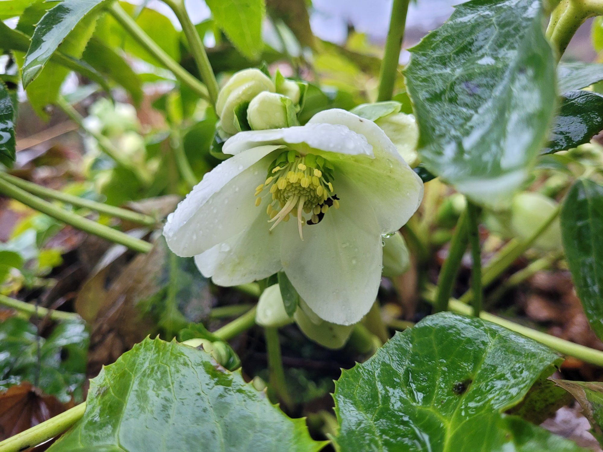 Hier blüht nun Helleborus 'Icebreaker Gala' so langsam auf...