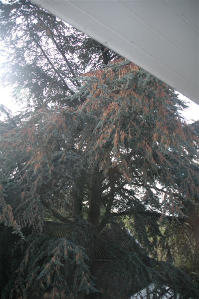 Bei uns scheint die Sonne als ob heute Morgen nichts gewesen wär... na, eher April, als Oktober. Trotzdem, heute bleib ich drinn und überlege mir einen "Schlachtplan", wie ich dem dicken Blütenstaubteppich den meine alte Atlasceder hier wolkenweisse verbreitet zuleibe rücke. Es sieht furchtbar aus der ganze Garten ist gelb . Auf jedem Blättchen ist ein gelber Staubzuckerguss und auf der Terasse rutscht man bei der Schmiere aus. Ich mag gar nicht anfangen , denn ich weiss nicht wo zuerst. Der Blütenstaubzauber ist ja noch nicht vorbei!!!! reif für den morbiden Garten ... diesmal leichengelb! genug gejammert, nun erst mal Koffie!!