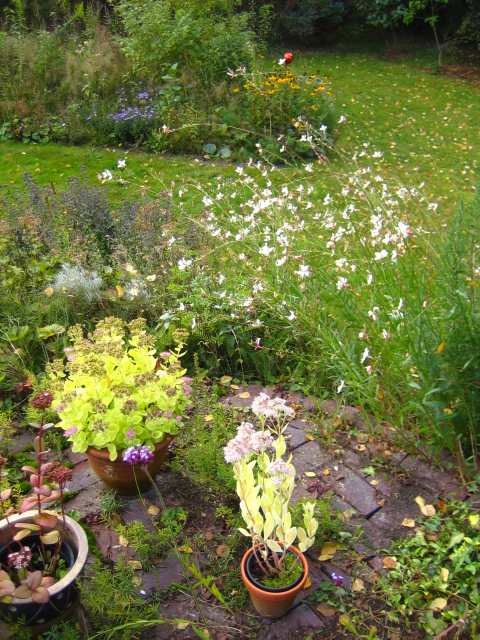 Hier noch ein Bild von der weißen gaura von Ende September. Die kleine rosafarbenen wachsen mittendrin und sind nicht zu sehen, weil das Foto nicht scharf genug ist.