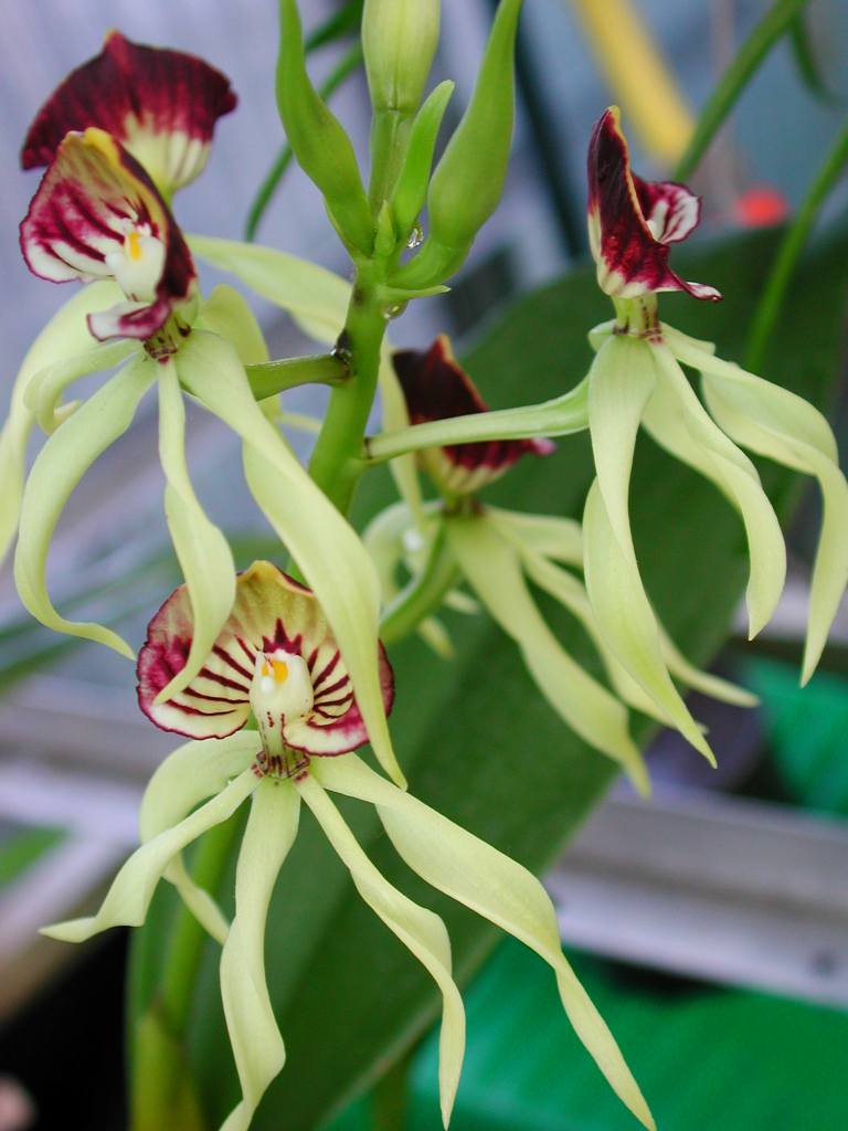 Zum Schluss noch zwei Bilder einer außergewöhnlichen Orchidee namens Catasetum. In dieser Gattung werden oft eingeschlechtliche Blüten ausgebildet, das heißt, die Pflanzen blühen entweder nur weiblich oder männlich. Dieses Catasetum blüht bei mir heuer männlich.